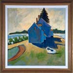 by solidly built imagery-simplification of form in a highly stylized vision